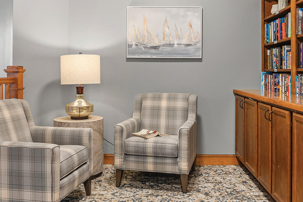 Located in beautiful Roseville, MN, our memory care neighborhoods are intimate and easy to navigate, empowering residents to enjoy a greater sense of independence while exploring, socializing and participating in daily activities and events. Our bright, spacious, thoughtfully designed apartments are available in studio and studio-plus layouts, each featuring private bathrooms and convenient kitchenettes.
